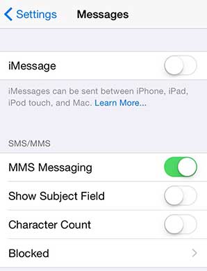 In ios 8 è stata introdotta una nuova funzione, con iMessage ora puoi inviare e ricevere messaggi tramite i vari dispositivi Apple ( iPad, Mac con osx Yosemite ) dopo aver fatto l’accesso ad iMessage con il tuo ID Apple. Questa app permette di inviare e ricevere SMS tramite la connessione Wifi, quindi senza costi aggiuntivi. Può però capitare di non riuscire a inviare SMS, quindi la prima cosa da fare è togliere il supporto i iMessage per l’invio degli SMS. Apri impostazioni > Messaggi > disabilita iMessage.