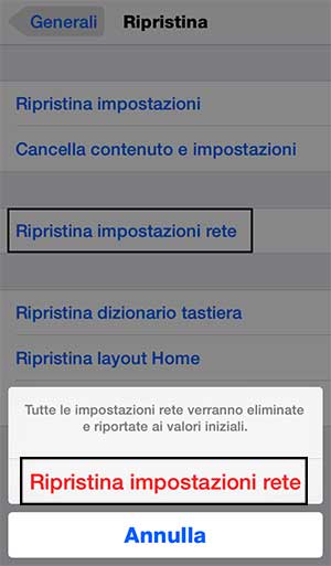- Resetta le impostazioni di rete: vai, Impostazioni > Generali > Ripristina impostazioni di rete.