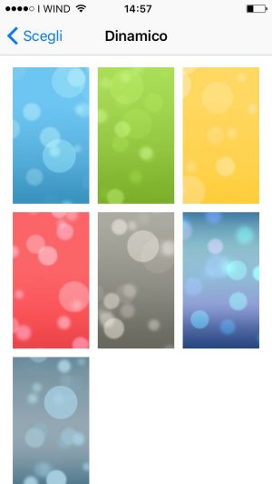 Da iOs 7 troviamo in tutti gli iPhone e iPad la sezione Sfondi Dinamici, dove sono presenti degli sfondi di default da utilizzare, l’animazione è sempre la stessa cambia solo il colore come puoi vedere dall’immagine qui a fianco.