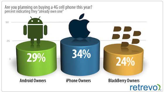 Una percentuale pari al 34% degli utenti iPhone 4 è convinto che l’iPhone viaggi già su reti 4G appunto per il suo nome.