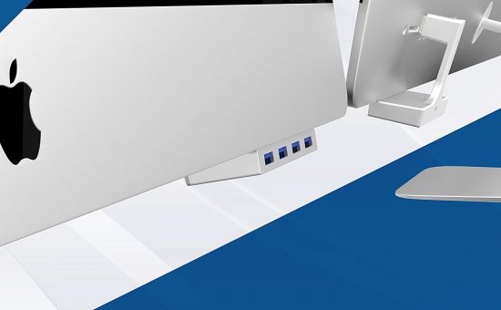 Un altro accessorio estremamente utile è il supporto per schermo con 4 porte USB. Questo supporto non funziona solo con iMac ma si può utilizzare con tutti i computer. La sua funzione è quella di sollevare di qualche cm lo schermo in modo da non inclinare troppo la testa per guardare lo schermo. Ma oltre ad alzare lo schermo, ha un’altra funzione essenziale: quella di fornire 4 porte USB. È possibile collegare il supporto alla corrente e avere così a disposizione 4 porte USB supplementari. Ovviamente non funzionano collegate al computer, ma funzionano solo come porte per la ricarica dei dispositivi. Possono essere utilizzate per ricaricare iPhone, iPad e altri dispositivi. Per quello che riguarda iMac, il vantaggio, oltre ad alzare lo schermo è quello di proteggere la tastiera da polvere ed altri agenti esterni. Per maggiori informazioni link qua sotto: