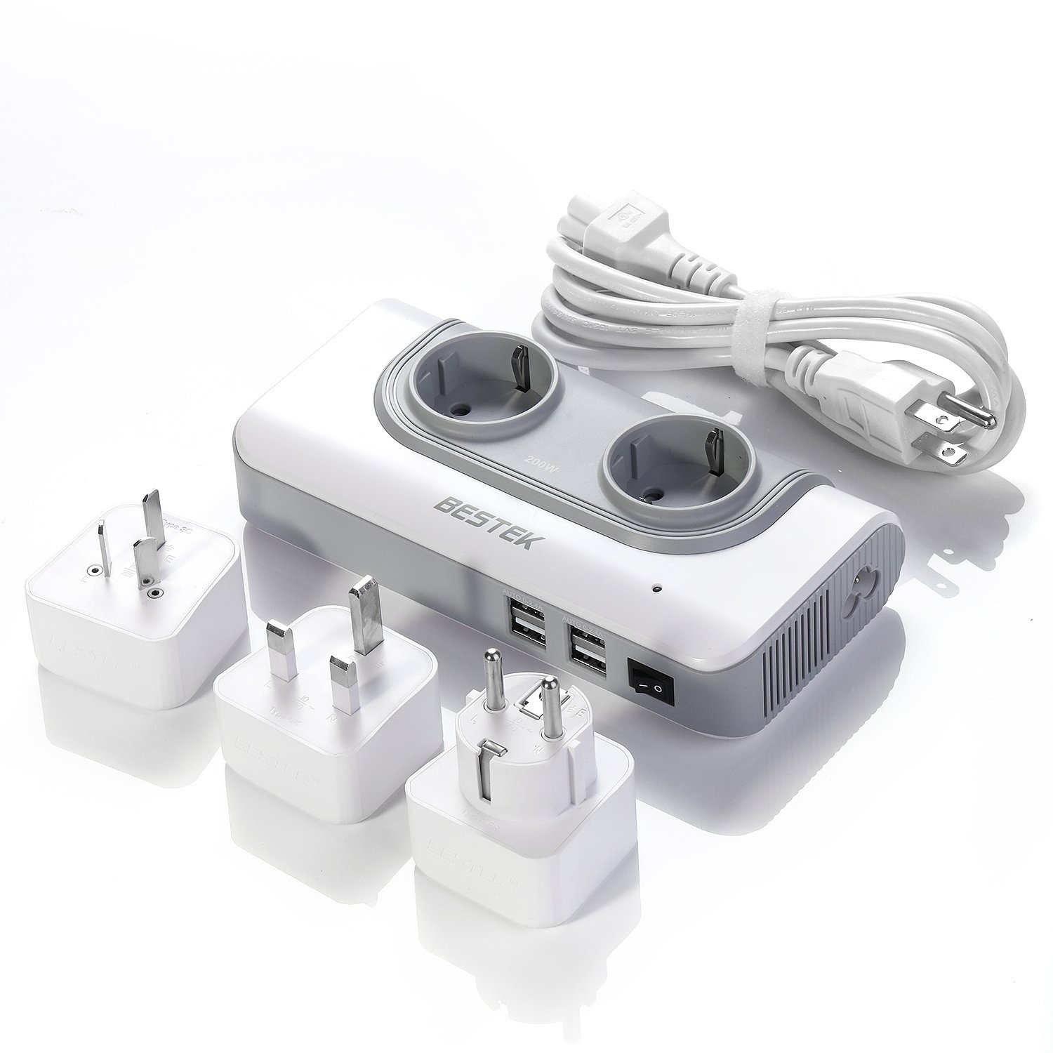 L’ultimo che vi presentiamo è diverso dai primi 2. È un adattatore per prese UK, Europa e Australia con convertitore di tensione. Questo prodotto è particolarmente interessante poichè offre ben 4 porte USB e 2 prese europee. In pratica potete ricaricare 4 dispositivi USB e 2 piccoli elettrodomestici come 2 computer ecc. È come avere una “ciabatta da viaggio” che è estremamente comoda e semplice da utilizzare. Il produttore garantisce gli standard per la sicurezza e la protezione. Le dimensioni ovviamente sono più grandi: 18cm di lunghezza x 8,8cm di larghezza e 4,3 cm di spessore.