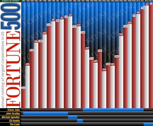 Fortune ricorda che nonostante Apple abbia conquistato la 6 posizione non è stato un anno facile. Tim Cook ha dovuto chiedere scusa ai clienti per i disagi dovuti all’utilizzo dell’app Mappe. Ci sono stati incidenti con i centri servizi in Cina. Ma nonostante questo Apple rimane un’icona dell’innovazione.