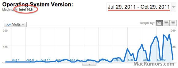 Apple non ha ancora annunciato di essere al lavoro per un altro sistema operativo tuttavia come si può vedere dal grafico pubblicato, la richiesta sembra non mancare. Nel grafico che abbiamo riportato è mostrato il numero di visite web per Mac OS X 10.8 nei mesi passati a partire da Agosto. Come si può vedere a partire da Agosto la richiesta è aumentata e non di poco e per Apple questo potrebbe rappresentare il punto di partenza per mettersi al lavoro.