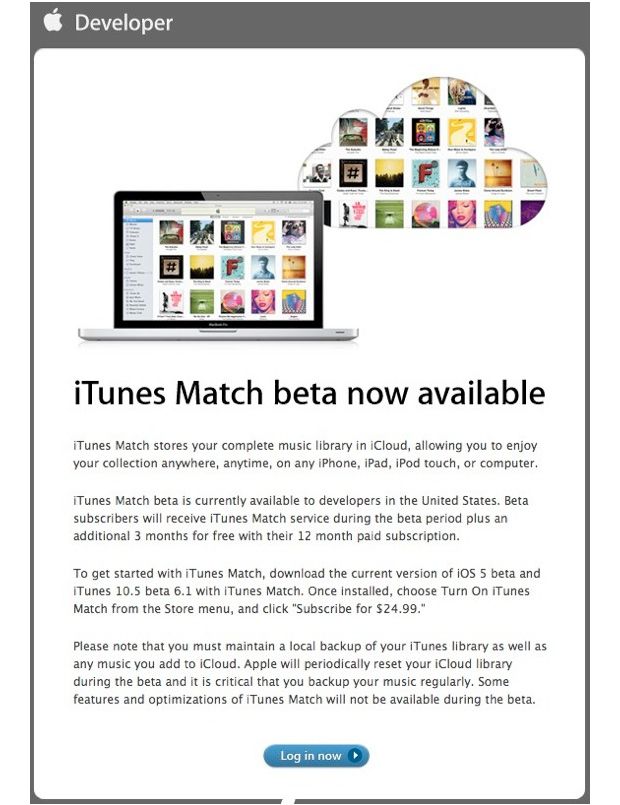 Apple rende disponibile iTunes con la versione beta 10.5 che consente l’attivazione del programma iTunes Match.