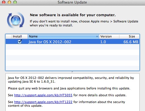 Il problema è che al momento più di 600.000 Mac risulterebbero infettati dal malware Flashback: come avevamo già scritto, la variante K di questo malware può installarsi nel sistema sfruttando le credenziali di affidabilità del runtime di Java, senza bisogno dell’autorizzazione dell’utente. Non si conoscono al momento le differenze tra il primo ed il secondo update Java per Mac anche se è abbastanza chiaro che l’obiettivo di fondo è quello di risolvere i difetti.