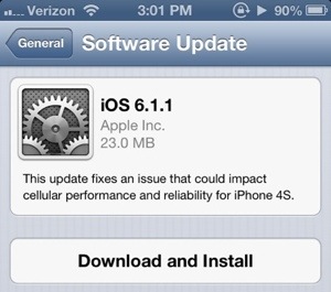 Apple rilascia iOS 6.1.1 per gli utenti. In particolare per gli utenti di iPhone 4S. Questo perché nei giorni scorsi si era discusso molto del nuovo aggiornamento iOS 6.1 che aveva lanciato Apple il mese scorso; l’aggiornamento aveva diversi bug che gli utenti avevano riscontrato. Uno di questi riguardava le funzioni 3G sul modello di iPhone 4S.