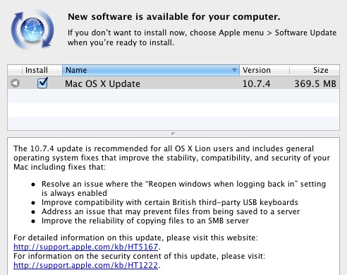 Apple rilascia un altro update del sistema operativo Mac OS X Lion. In questo nuovo aggiornamento non abbiamo sostanziali novità, in ogni caso è raccomandato per tutti gli utenti Lion da parte di Apple. Basta aprire l’Aggiornamento Software e viene subito fuori la pagina con le caratteristiche ed i dettagli per l’aggiornamento.