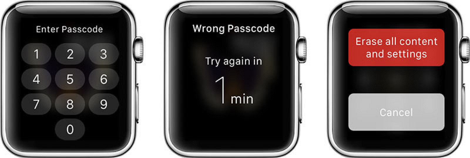 Apple Watch ha un sistema per cui quando viene “staccato” dal polso dell’utente, bisogna inserire il codice numerico di sicurezza. Questo permette di non accedere ai dati interni ma non proibisce di associare Apple Watch ad un nuovo iPhone. Infatti con Apple Watch bloccato dal codice numerico, è possibile lo stesso mantenere schiacciato a lungo il tasto in basso per accedere ad un’impostazione che permette di cancellare tutte le informazioni e associare Apple Watch ad un nuovo iPhone senza nessuna informazione del precedente proprietario.