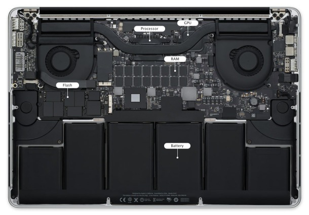 La batteria che adesso possiamo trovare sul MacBook Pro Retina è del 23% più grande di quella che si trova sul MacBook Pro 15 pollici non Retina. Questa batteria più grande offre la stessa potenza in termini di durata di quella per il MacBook Pro non Retina, tuttavia ha un costo superiore essendo più grande. La batteria per il Retina costa 199$ mentre quella per il non-Retina viene 129$. Sono 70$ di differenza.