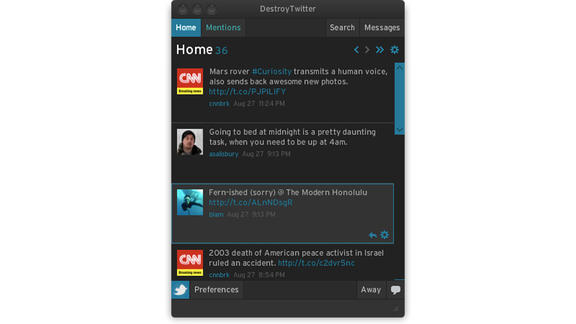 DestroyTwitter invece ha l’enorme vantaggio di essere molto leggera. Consuma pochissima memoria, si aggiorna in fretta e automaticamente. Un’ottima applicazione per chi non vuole fare un utilizzo di Twitter professionale e necessita di uno strumento veloce e pratico.