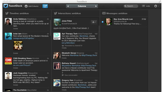 L’applicazione più classica è Twitter, che è l’applicazione ufficiale, è semplice e chiara da utilizzare. L’altra applicazione sempre di proprietà di Twitter è Tweetdeck che invece integra nella schermata tutte le colonne che volete. La visuale quindi cambia anche se la sostanza è la stessa.