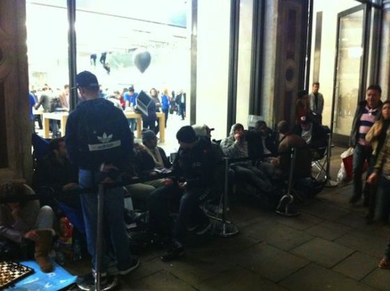 Lo stesso discorso è valido per gli Apple Store a Londra, dove c’è gente che passerà la notte davanti alla porta dell’Apple Store. La foto che riportiamo infatti risale a qualche ora fa e riprende la coda che si è formata davanti all’Apple Store di Regent Street.