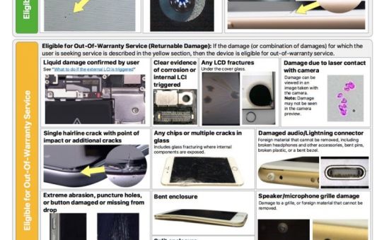È stata trovata una guida riguardo le procedure scelte da Apple per decidere se riparare il vostro dispositivo. Il documento interno è datato 3 Marzo 2017 e riguarda iPhone 6, iPhone 6 Plus, iPhone 6S, iPhone 6S Plus, iPhone 7 e iPhone 7 Plus. Secondo la fonte interna sarebbe disponibile lo stesso documento interno per tutti i dispositivi Apple e di solito viene utilizzato per la formazione del personale.