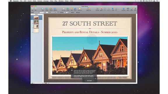 Molti pensano che solo con Photoshop si riescano ad avere grandi risultati fotografici ma non è così. Infatti anche con Keynote si possono ottenere risultati significativi che di certo non ci si aspetta da un’applicazione che dovrebbe essere la (brutta) copia di Power Point della Microsoft. Abbiamo già visto la settimana scorsa come fare per ottenere effetti grafici come variazioni di foto all’interno della stessa diapositiva. Ora vediamo come si può cambiare lo sfondo ad una foto con i sistemi che ci mette a disposizione Keynote.