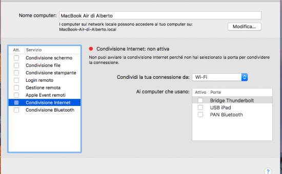 L’obbiettivo finale è quello di trasformare il Mac in una specie di Access point wireless temporaneo.