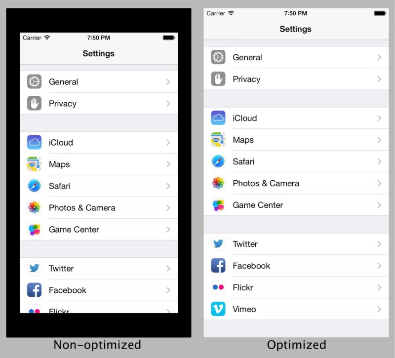 Apple ha anche incoraggiato gli sviluppatori ad utilizzare Auto Layout, che è un sistema che si basa su formula matematiche. Utilizzando Auto Layout si riesce a creare un’interfaccia dinamica e versatile che risponde correttamente ai cambiamenti della dimensione dello schermo. In questo modo gli sviluppatori riuscirebbero ad adattare meglio le app ai cambiamenti di risoluzione futuri.