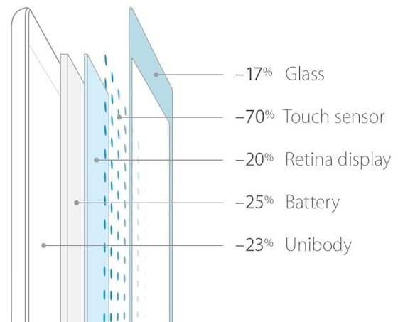 Come è stato notato da IHS Suppli, iPad Air utilizza solo 36 LED che sono decisamente meno degli 84 LED utilizzati per la versione precedente. Questo ha influenzato fortemente l’utilizzo della batteria e quindi anche le dimensioni e il peso. Ma lo schermo di iPad Air non è quello che troviamo sugli altri iPad, perchè utilizza la tecnologia IGZO. La tecnologia IGZO è da anni che si vocifera ma diversi produttori avevano difficoltà ad accontentare Apple nei suoi quantitativi.