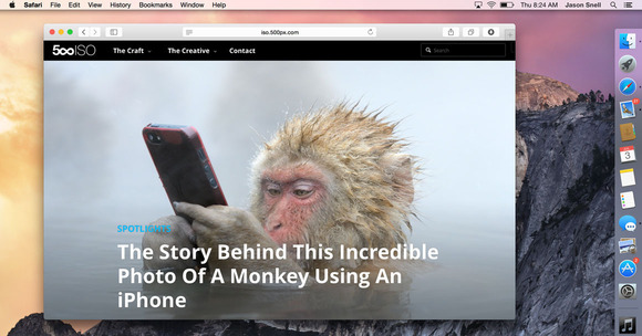 Partiamo con l’interfaccia grafica che è stata interamente rivista. Intanto è stato molto razionalizzato lo spazio occupato dalle barre degli strumenti di Safari lasciando molto più spazio alla pagina internet. Quando si utilizza Safari la barra di ricerca/url mostra solo una parte dell’URL. Questo contribuisce al look minimalista, ma tutto è preso su imitazione di iOS 7 dove queste novità sono già state introdotte. Questo minimalismo che raccoglie tutto in una sola barra in alto è indispensabile su iPhone, utile su iPad ma forse un po’ superfluo su un iMac da 27 pollici.