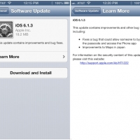 È arrivato il nuovo iOS 6.1.3 ma le novità non sono così interessanti. Il nuovo iOS 6.1.3 è l’ultimo aggiornamento rilasciato da iOS. Le novità riguardano bug minori e le mappe giapponesi. Sono state aggiornate e migliorate le mappe per i clienti giapponesi. La novità per le mappe giapponesi riguarda solo l’app Mappe. Il bug risolto riguarda il passcode. Il problema riguardava un bug che permetteva di aggirare il blocco con codice quando si blocca lo schermo.
