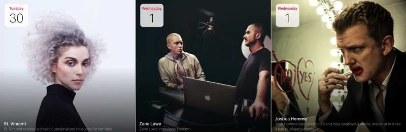 La canzone inaugurale di Beats 1 è stata City dei Spring King e subito dopo Dreams dei Beck e In Color dei Jamie xx. Beats 1 avrà diversi show live con diversi personaggi ed è disponibile un’intera scaletta di quello che verrà trasmesso sul sito web di Beats 1. Apple, oltre alla pagina dedicata a Beats radio, ha anche una pagina su Tumblr. Sulla pagina di Beats, oltre alla scaletta futura con i personaggi che si potranno ascoltare live, viene aggiornato anche l’orario in base al fuso orario della zona di appartenenza. Beats 1 avrà anche talk show, interviste e dialoghi tra i conduttori radiofonici e personaggi famosi. Un esempio è l’intervista di domani ad Eminem.