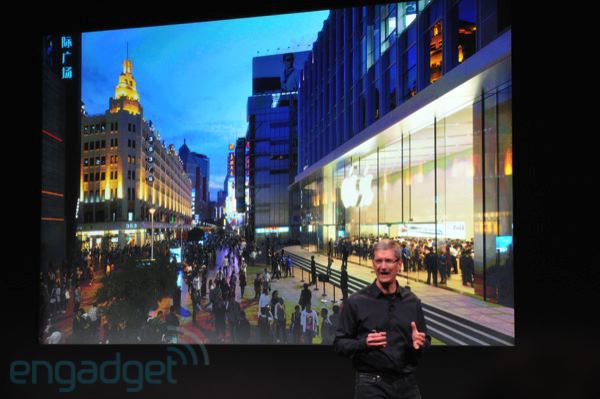Tim Cook esordisce parlando dei nuovi Apple Store presenti in tutto il mondo e di quanto l’azienda stia puntando su un rapporto più diretto con i consumatori. I 2 nuovi Apple Store più importanti sono quello a Shangai e Hong Kong. L’Apple Store a Shangai ha visto passare oltre 100 mila visitatori in un solo weekend. Quando è stato aperto l’Apple Store a Los Angeles sono passate 100 mila persone in un mese.