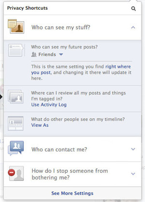 Vi sarete accorti che con il nuovo anno Facebook ha modificato le impostazioni di Privacy che ormai hanno tutti gli account. Le impostazioni sono cambiate soprattutto esteticamente perchè come funzioni sono rimaste le stesse. Vediamo insieme come accedere al menù delle impostazioni di Facebook. Sulla schermata di Facebook avrete visto in alto a destra che tra la “Home” e “Setting” c’è l’icona con il lucchetto che è proprio quella per accedere alle impostazioni di privacy. Schiacciando sull’icona compaiono in sostanza tre possibilità: Chi può vedere la mia roba? Chi può contattarmi? e come faccio a bloccare chi mi annoia?