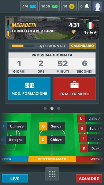 Mentre prepari le formazioni, hai sempre a portata di mano i match della giornata, in modo da ragionare sulle combinazioni migliori di giocatori, che potrai comunque modificare a piacere entro l’orario d’inizio delle competizioni.