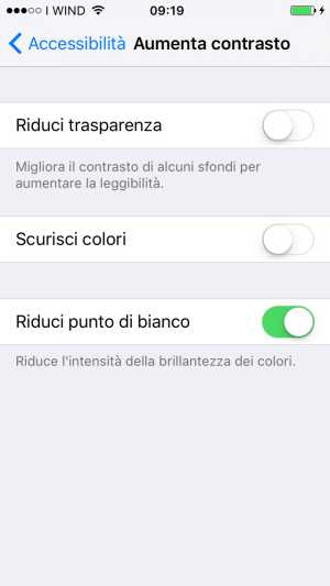 Se lo schermo del tuo smartphone, impostato al livello più basso di luminosità, rischia comunque di svegliare il tuo partner o tuo figlio durante la notte, sappi che si può scurire ulteriormente. Basta un piccolo gesto: attiva Riduci il punto di bianco all’interno di Impostazioni->Generali->Accessibilità->Aumenta contrasto.