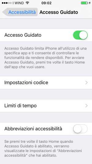 Puoi attivare Accesso Guidato entrando in Impostazioni->Generali->Accessibilità; successivamente imposta un PIN e vai nell’app che vuoi bloccare, Foto, nell’esempio precedente, ma potrebbe essere un’altra qualsiasi ad eccezione della schermata Home e di Impostazioni.