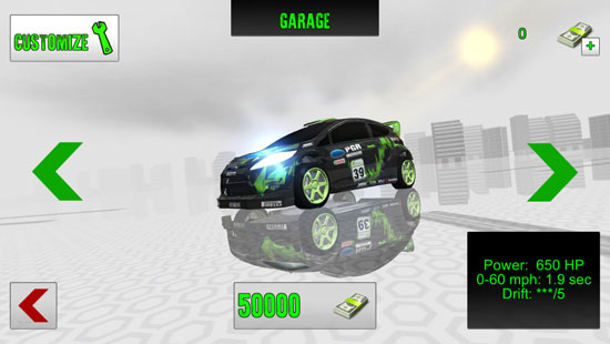 Prima di partire puoi scegliere i settaggi (“Settings”) che riguardano lo sterzo e l’accelerazione (più o meno sensibili), se vuoi il sonoro e se le macchine si devono rovinare quando ti scontri contro qualcosa. Poi potresti passare dal “Garage”, per visualizzare la tua auto ed effettuare eventuali modifiche (cliccando su “customize”).