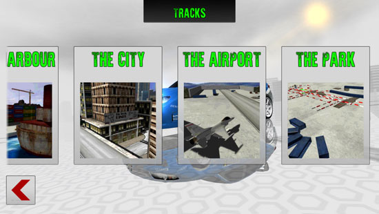 Quando sei pronto clicca su “Play” e passa alla selezione del tracciato su cui guidare, ce ne sono quattro: il porto, la città, l’aeroporto e il parco, ognuno con difficoltà e caratteristiche differenti.
