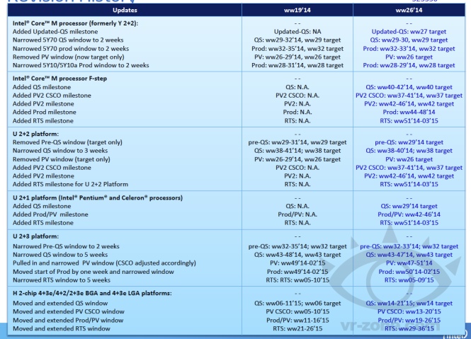 Per quello che riguarda i processori Broadwell le aspettative sono per una performance superiore del 30%, e un consumo minore di energia che porterebbe benefici nella durata della batteria. I processori Braodwell sarebbero sostituiti nel 2015 dai processori Skylake ma bisognerà vedere se Intel riuscirà a mantenere questa tabella di marcia.