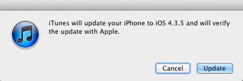 L’aggiornamento iOS 4.3.5 potrà essere installato connettendo il device targato Apple al pc. Al resto penserà iTunes che notificherà la presenza dell’aggiornamento, consentendo ai diretti interessati di poter seguire le istruzioni sullo schermo, al fine di portare a termine con esito positivo l’intero processo.