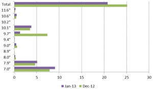 Secondo gli analisti internazionali le vendite di iPad Mini avrebbero visto un balzo improvviso inatteso che ha spostato la domanda degli schermi dal modello a 9 pollici a quello a 7 pollici. Le vendite di iPad sono crollate da 7,4 milioni a Dicembre a 1,3 milioni a Gennaio. Un po’ di questo calo è legato al fatto che il periodo natalizio è quello più redditizio. Ma nonostante questo le vendite di iPad Mini sono intorno ai 5 milioni. Le vendite totali di tablet con lo schermo da 7 pollici come Google Nexus, Kindle Fire sono intorno ai 14 milioni.