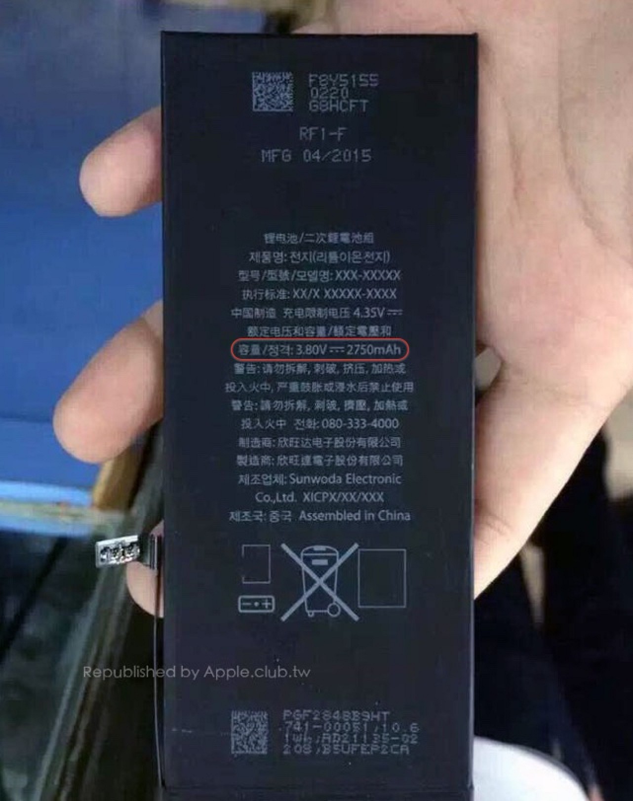 iPhone 6S Plus avrà una batteria da 2750 mAh secondo delle immagini prese in un blog taiwanese. Questo vuol dire che la batteria di iPhone 6S sarà più piccola della batteria di iPhone 6 Plus che è da 2915 mAh. Per quello che riguarda iPhone 6S la batteria sarà 1715 mAh che è più piccola rispetto a quella di iPhone 6. La conferma in questo caso verrebbe direttamente da Apple che ha creato un video per la presentazione del 3D Touch in cui ha anche inquadrato la batteria di iPhone 6S.