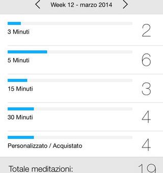 La mindfulness contiene quattro meditazioni guidate di durata variabile, ovvero 3, 5, 15 e 30 minuti, quattro meditazioni silenziose con campanelli della stessa durata, un bodyscan guidato, ed una sezione statistiche dove puoi vedere quante volte hai meditato e per quanto tempo.
