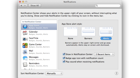 Da Preferenze di Sistema –> Notifiche si può cambiare il modo in cui vengono visualizzate le notifiche e i diversi avvisi compresi Badge e Suoni.