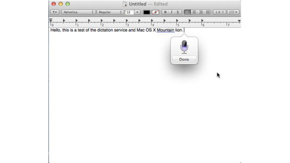 Dictation è un’altra delle innovative funzioni di OS X Mountain Lion, permette di dettare testi invece di scriverli. Basta posizionare il cursore e schiacciare due volte sul tasto fn. Non tutte le applicazioni supportano questa funzione.