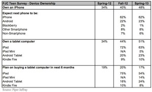 L’analista di Piper Jaffray, Gene Munster ha analizzato le vendite di smartphone e tablet tra i ragazzi americani. Negli Stati Uniti il mercato degli smartphone è molto più forte che in Italia ma gli Stati Uniti segnano il trend per il nostro futuro.