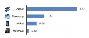Al primo posto c’è Apple che ha ottenuto un punteggio di 3,47 al secondo posto Samsung con 1,21 e al terzo posto Nokia con 0,68. Motorola invece segue quarta con 0,13. Questa classifica è stata fatta su un campione di 30 milioni di utenti in base alle rispettive fasce di mercato.