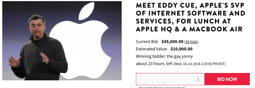 L’asta termina oggi 16 Luglio e attualmente ha un valore di 45.000 dollari con 26 offerte attualmente registrate. Questa asta è iniziata in Giugno. Tim Cook ha partecipato ad iniziative con CharityBuzz due volte raccogliendo in totale 940.000$ da destinare al RFK Center fot Justice and Human Rights.