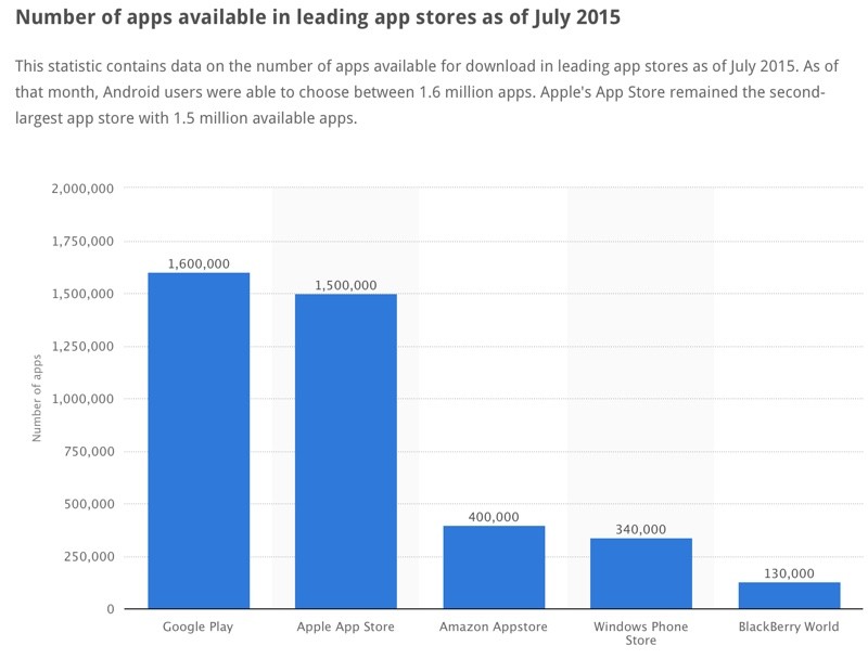 Sia l’App Store di Apple che il Google Play su Android, offrono molte più applicazioni di Windows. Attualmente nel mercato si possono contare 1,6 milioni di app per Android, 1,5 milioni di app per iOS, 400 mila per Amazon Appstore e 340 mila per il Windows Phone Store. La versione finale Windows Bridge dovrebbe arrivare per la fine dell’anno e probabilmente sarà disponibile insieme a Windows 10.