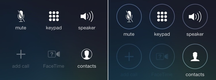 Le icone che appaiono mentre si chiama sono state cambiate. Adesso hanno un cerchio bianco che ne determina i confini e appaiono leggermente più grandi. Nella schermata di accensione quando gli sviluppatori hanno installato iOS 7 Beta 5 hanno notato che la schermata era bianca negli iPhone bianchi mentre era del classico colore nero nel caso degli iPhone neri.