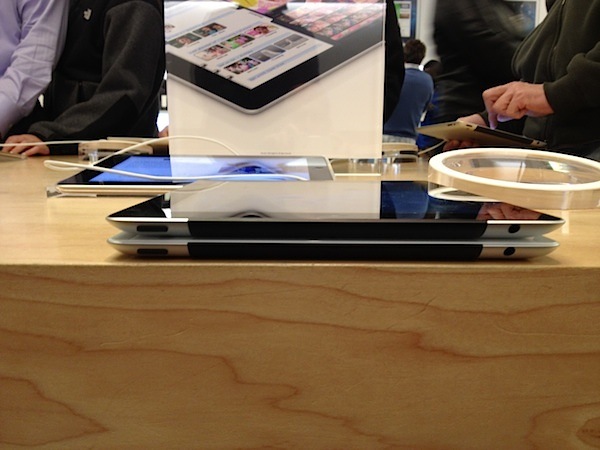 Il progetto iniziale di Apple voleva che l’iPad di terza generazione avesse il display IGZO che è un display prodotto da Sharp che offre le stesse caratteristiche dell’LCD di iPad 2 in termini di consumo di batteria e spazio occupato però in cambio riesce a supportare il Retina Display. Ma non essendo pronta in tempo Sharp, Apple ha dovuto ripiegare sul piano B e quindi raddoppiare i Led sullo schermo dell’iPad 3 e offrire lo stesso un Retina Display ma con un batteria più grande e aumentando lo spessore.