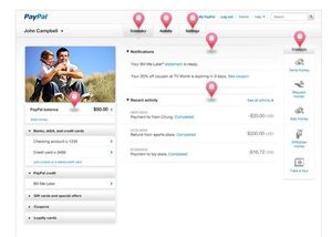 La grafica verrà divisa in 3 colonne. Nella prima c’è un po’ il riassunto del saldo di paypal, del vostro account, con la carta di credito associata a paypal ecc. Ma la cosa interessante è che sono anche state aggiunte le funzioni per carte regalo, coupons, e carte fedeltà. Nella colonna centrale invece la prima cosa che si vede è la scritta Notifiche. Questo serve per non dimenticarsi pagamenti, o altre notifiche che vengono inviate da PayPal. Sotto le notifiche c’è la funzione Attività Recenti che serve per vedere tutte le transazioni compiute di recente. Nella colonna a destra ci sono invece delle icone che rimandano a determinate funzioni. Per esempio c’è l’icona per richiedere denaro, per spedire denaro, per aggiungere denaro e altro.
