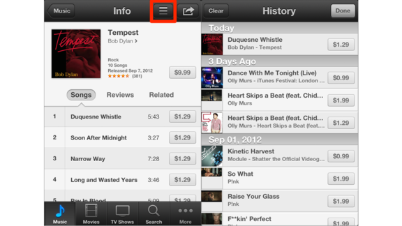Nell’App Store e nell’iTunes Store è presente la Tab Cronologia che vi permette di ritrovare le operazioni fatte sui diversi Store. In questo modo non perderete mai le vostre ricerche o i vostri download.