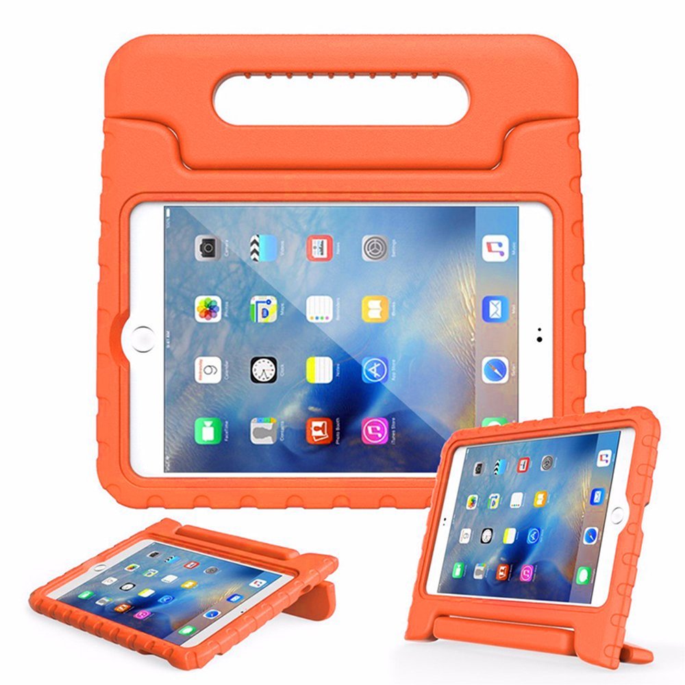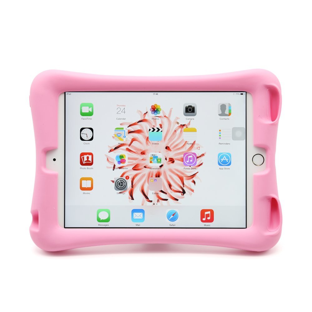 Partiamo con la cover per iPad Mini, si tratta di una cover in silicone, dai colori molto accattivanti, antiurto, resistente e protettiva. La cover è disponibile in 3 varianti di colore ed è perfetta per le tue esigenze. È stata progettata per iPad Mini 4, garantendo l’accesso a tutte le porte e i tasti. Simpatico il manico esterno che permette al tablet di essere portato in giro come una valigetta 24 ore. La cover oltre a proteggere tutti gli spigoli e il case posteriore dell’iPad, ha anche dei bordi in rilievo e così protegge anche lo schermo di iPad se viene appoggiato con lo schermo su una superficie non liscia o pulita. È perfetto per permettere di giocare ai bambini e consente la massima funzionalità. Inoltre iPad Mini ha la dimensione forse più adatta per un tablet per bambini e il peso è più contenuto degli altri modelli.