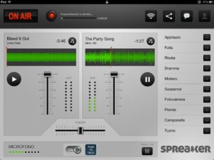 Spreaker DJ è un’app per iPad che vi permette di diventare dei veri DJ con il vostro iPad. Ma questa app non è la solita consolle da Dj che potete trovare in giro per l’app Store. La mission di Spreaker è quella di realizzare comunicazioni live da trasmettere come web-radio. Questa è la novità e la forza del prodotto offerto. Questa app permette di trasmettere i propri lavori di mix musicali e vocali via diversi social network. Si possono utilizzare i maggiori social network come Facebook e Twitter e condividere i propri lavori sfruttando gli accessi dell’app.