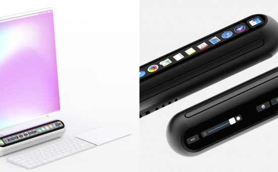 Il design del dispositivo si compone di un unico cilindro con una Touch Bar che prevede anche l’interfaccia di utilizzo. L’utente può interagire utilizzando il computer come Dock e Touch Bar potendo così aprire App e accedere ad impostazioni virtuali. Lo studio del design è stato fatto ai minimi dettagli in modo da agevolare l’utilizzo della Touch Bar con l’angolazione giusta per l’utente.